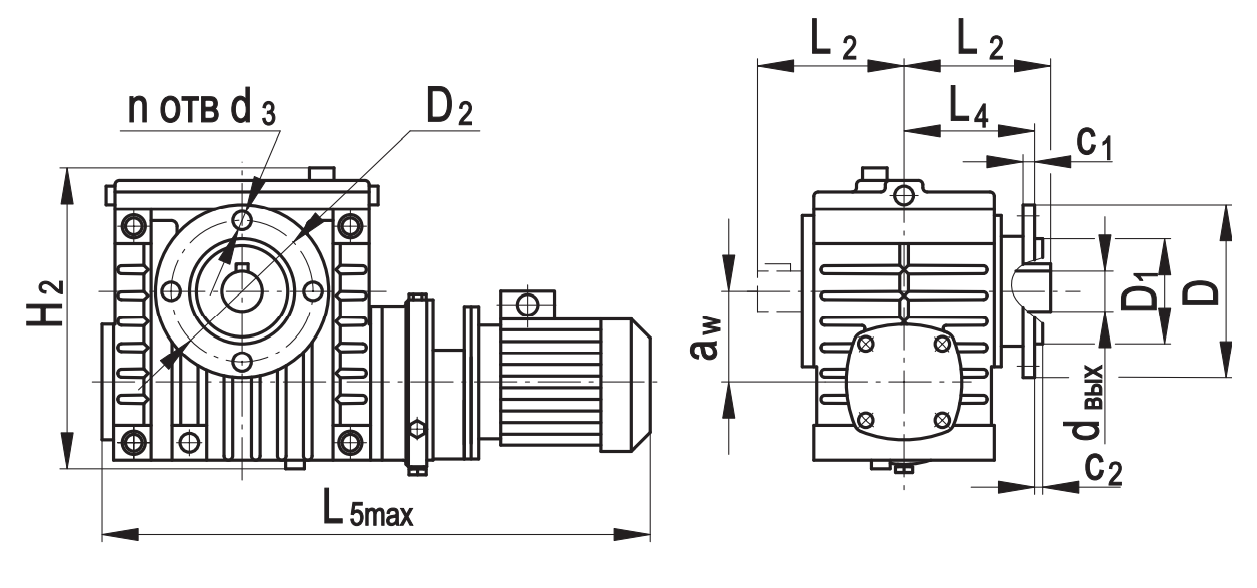 aw D D1 D2 Н2 L2* L3* L4 L5max С1 С2 d3 dвх dвых