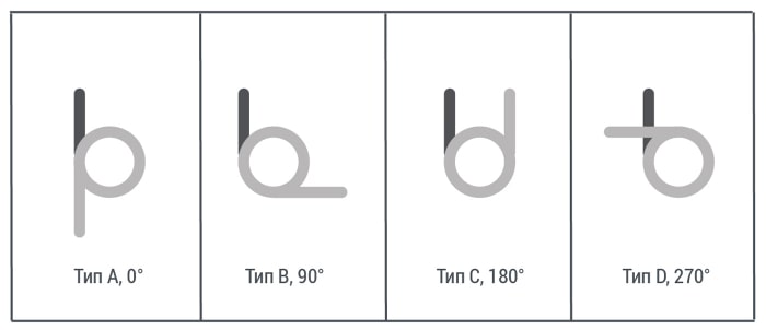 Пружины кручения имеют множество видов, их отличает направление навивки, правое или левое, форма и ориентация зацепов.